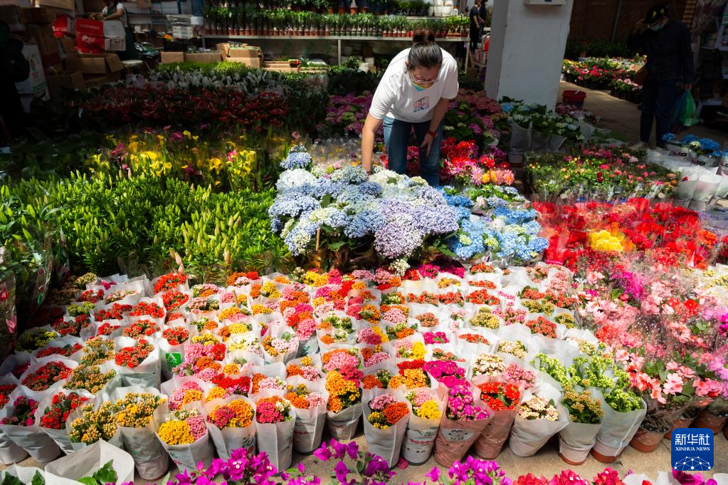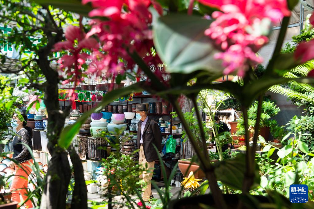 5月18日,市民在哈尔滨花卉大市场选购植物。