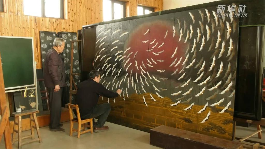 作为国家级非遗平遥推光漆器髹饰技艺的代表性传承人,薛生金从事推光漆器的研究已有60多年。他培养出200多名徒弟,恢复生产了失传的堆鼓罩漆,并将推光漆器髹饰工艺由过去的3种增加到20多种。
