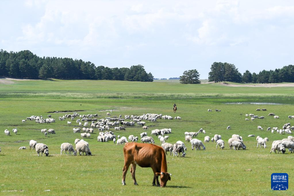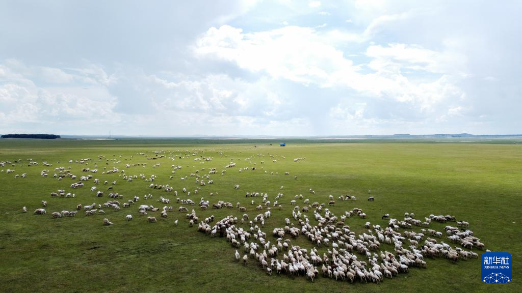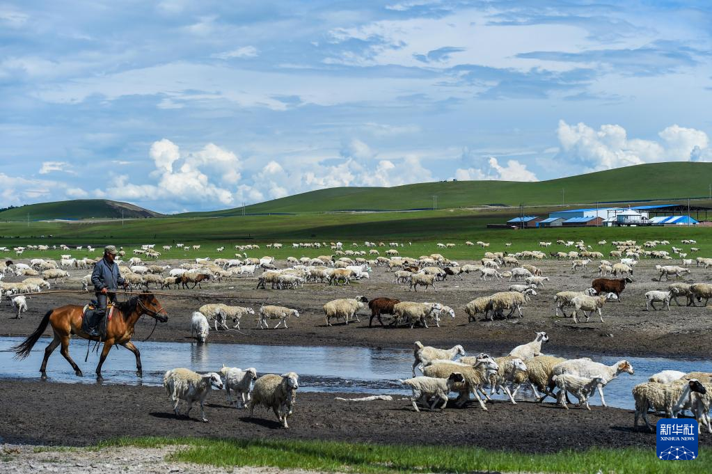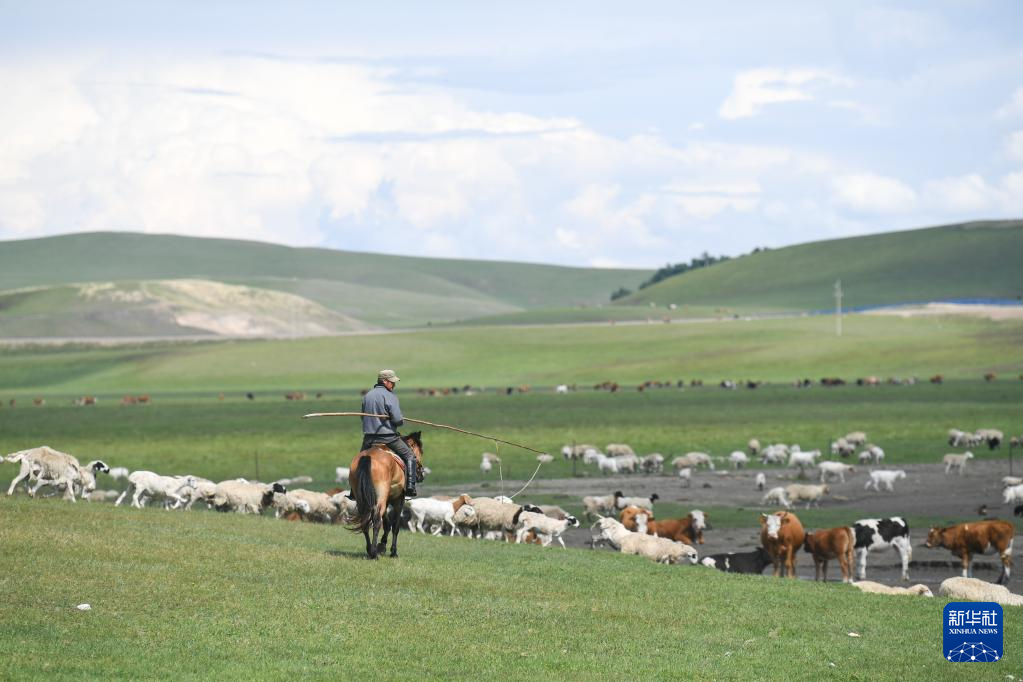 夏日里,位于内蒙古呼伦贝尔市新巴尔虎左旗的夏营地水草丰美、绿草如茵,迎来放牧黄金季节。