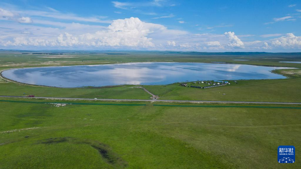 6月26日在新巴尔虎左旗道乐都夏营地拍摄的的夏日风光(无人机照片)。