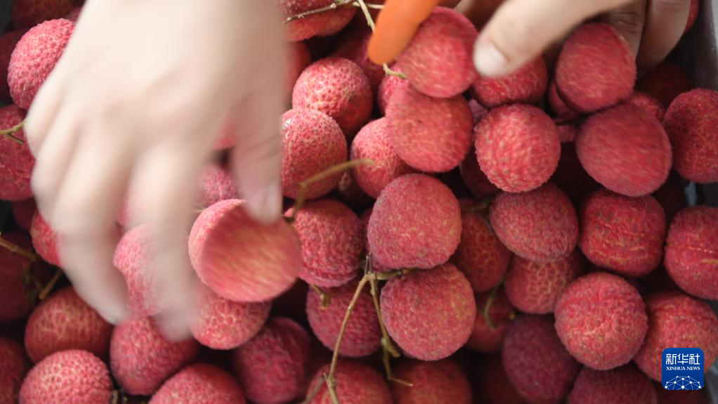 6月29日,在广西钦州市钦南区沙埠镇杨梅村荔枝园,村民按照荔枝大小分类装箱。