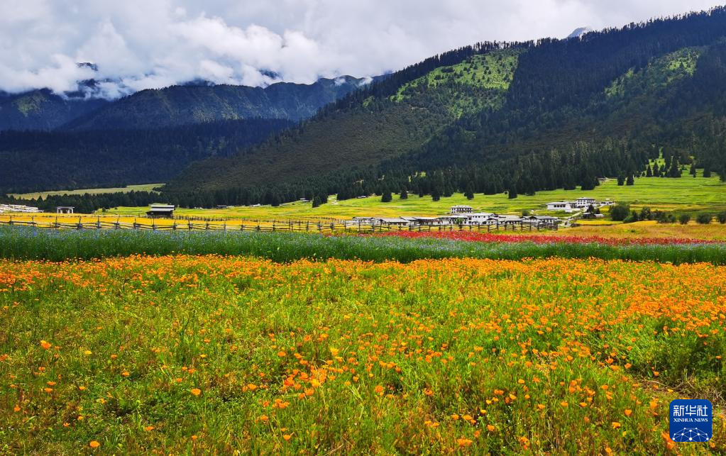 夏日的鲁朗镇,溪水潺潺,鲜花盛开,藏式村寨点缀其间,勾画出一幅恬静、优美的“高原山居图”。