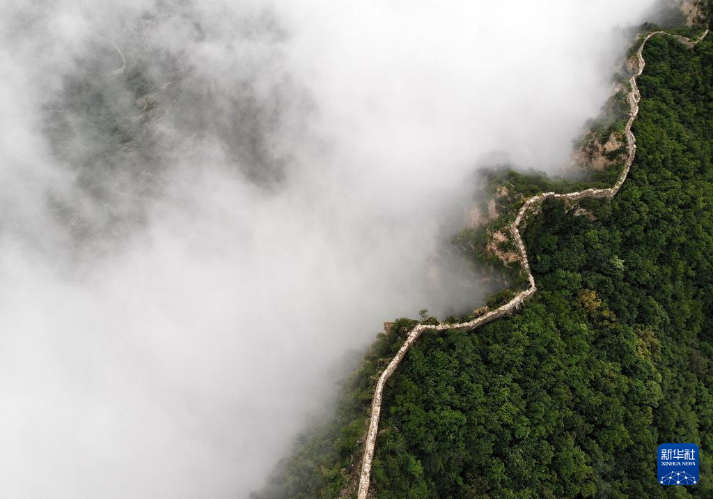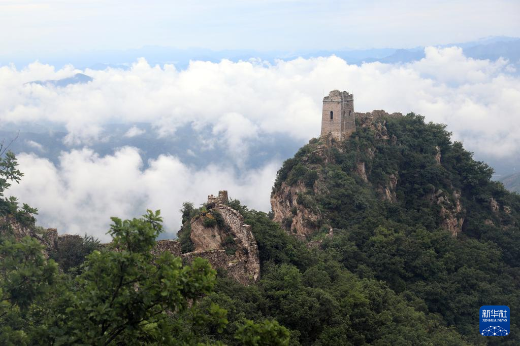 8月9日拍摄的金山岭长城云海景观(无人机照片)。
