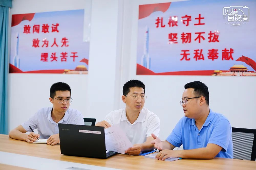 位于文昌国际航天城管理局办公区内,工作人员进行工作讨论。海南日报记者 封烁 摄