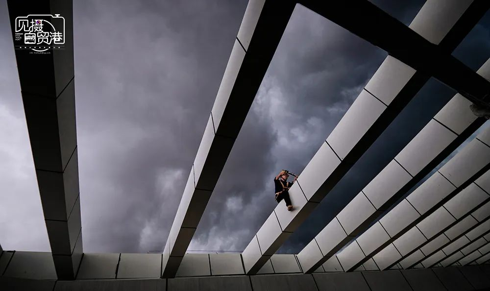 文昌国际航天城产业服务中心项目现场,工人正进行屋顶墙面装修工作。海南日报记者 封烁 摄