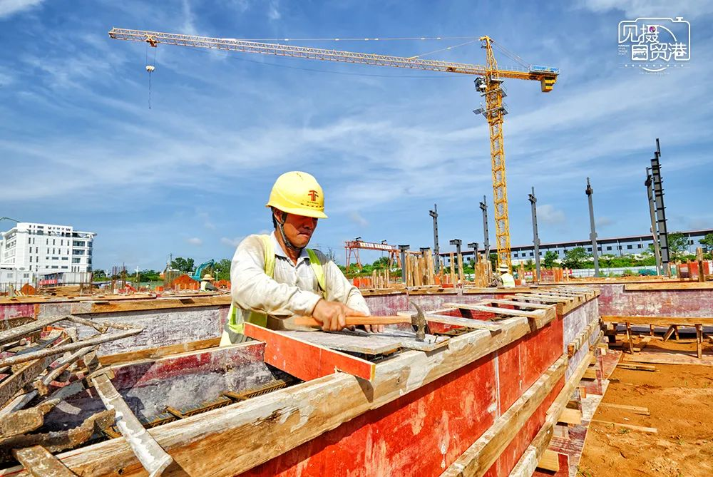 位于卫星总装测试厂房施工现场,工人进行地基打桩施工。海南日报记者 封烁 摄