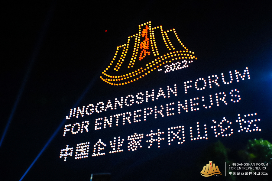 图为2022中国企业家井冈山论坛举行无人机表演