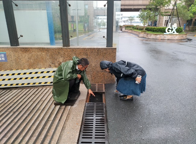 9月5日,台风“轩岚诺”给杭州带来了暴雨和大风。杭州市钱塘区临江高新社区组织志愿者挨家挨户走访,建议高层住户收好窗台上的杂物,管好门窗,以防发生意外。