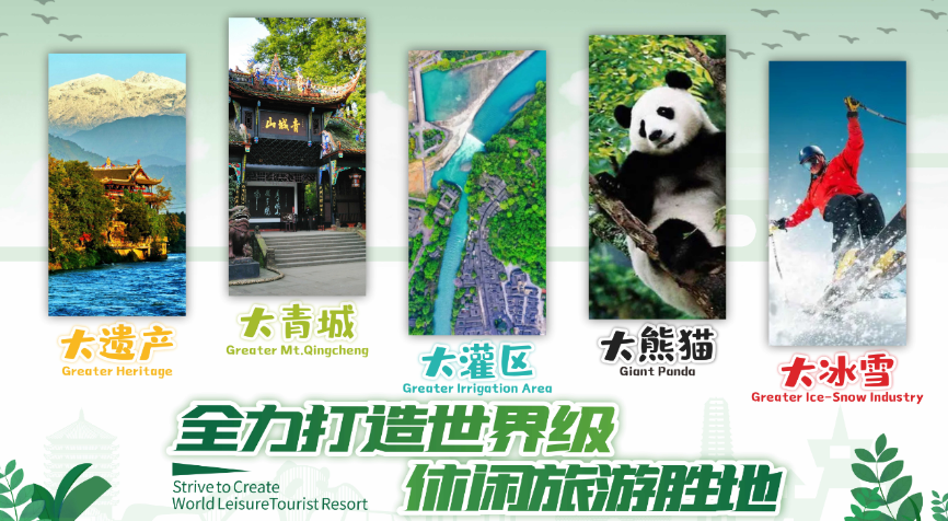 近年来,都江堰坚持将“绿水青山”作为城市最大的生产力、品牌力、吸引力,聚力做靓“山、水、田、林、文”五篇文章,擦亮“大青城、大灌区、大熊猫、大遗产、大冰雪”五大城市品牌,走出了一条以绿色为引领、以旅游为特色的高质量发展之路,全力打造“绿水青山就是金山银山”的实践样板。先后荣获全国文明城市、首批国家全域旅游示范区、国家级旅游度假区、国家生态市、国家级生态示范区、“环境空气质量达标市”“绿色发展优秀城市”等殊荣,被四川省人民政府命名为首批省级生态县,连续5年获评“中国西部百强县市”。
