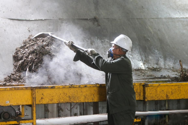 为破解这一难题,金牛区绿化再生资源利用基地采用政府搭台、平台公司运营管理,并引入研发单位的三方合作模式经营建设“落叶工厂”,将枯枝落叶转化成高热值燃料或生物肥料,从而让绿化垃圾就地有效转化利用,变废为宝。