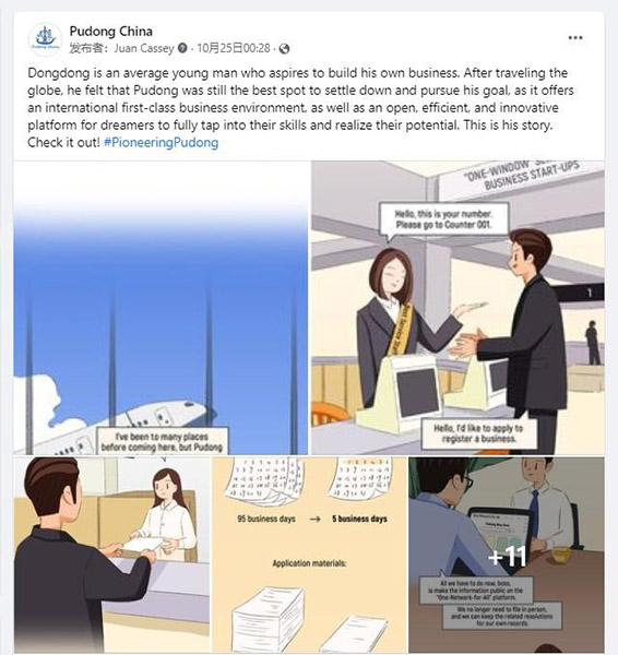 作品简介:《东东创业记》围绕浦东新区近十年在制度创新、优化国际营商环境等方面所取得的显著成果,通过讲述一位青年企业家东东来到浦东创业并扎根,从其注册企业到公司成长过程中的故事,以时下年轻人喜闻乐见的“条漫”呈现,浅显易懂接地气,取得了较好的传播效果。