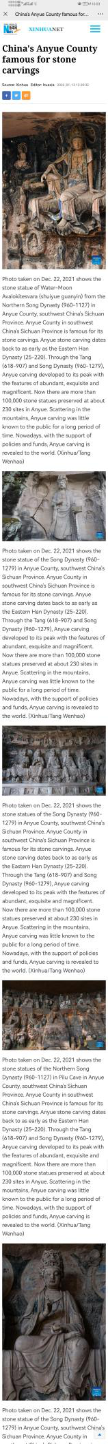 作品以图片的形式向海外展示安岳石刻“古、多、精、美”。安岳石刻在数量众多的造像中,除少数有敦朴、粗犷的魏晋之风外,大多呈体态丰满、雍容华贵的唐代风,以及精细华美、璎珞盖身的宋代风,蔚为壮观,具有极高的艺术价值。