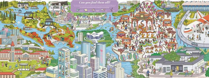 作品简介:《新吴上河图》手绘画卷描绘了苏南硕放国际机场、泰伯庙、梅里古镇、鸿山遗址博物馆、梁鸿生态湿地公园、梅村高中、新吴万达等多个区内地标建筑,从历史传承、科教文化、生态保护、现代产业等多个维度,展现新吴区发展成就。画卷中还将代表了新吴区文化产业的玉飞凤、玉兰花、二胡、芯片、飞机等五个元素融入其中,设置互动彩蛋,为读者在阅读手绘画卷,感受新吴区深厚的文化内涵、领略发展成果的同时,增添阅读乐趣。