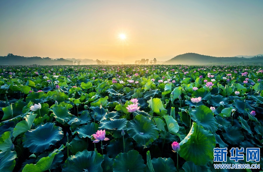 图为抚州市广昌县驿前镇姚西村万亩莲塘。新华网发 谢昌建 摄