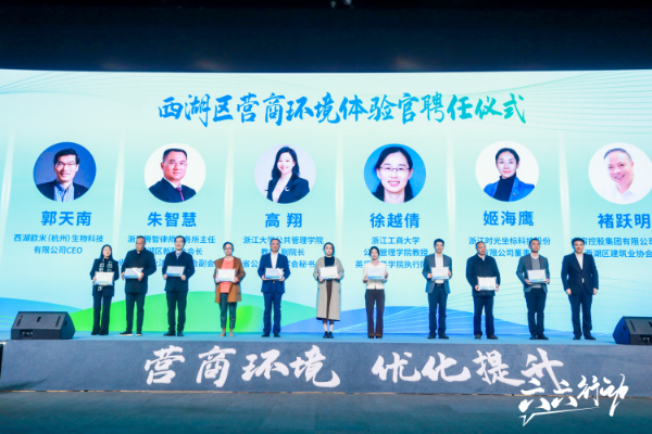 当天,西湖区还首次公开征集“西湖区营商环境体验官”,来自高校院所、重点行业企业、商会行会的10位营商环境体验官现场接受聘书。据了解,首批“西湖区营商环境体验官”是西湖区营商环境建设的关键成员,具有监督、建议和宣传等多项职责。