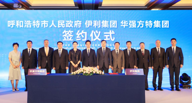 6月9日,呼和浩特市人民政府、伊利集团与华强方特集团战略合作签约仪式在京举行,并正式宣布“华夏历史文明传承创新示范园”项目落地呼和浩特市伊利现代智慧健康谷。呼和浩特市委副书记、市长贺海东,伊利集团董事长兼总裁潘刚、高级执行总裁张剑秋,华强方特文化科技集团执行总裁顿忠杰、副总裁陈祖尧等出席了签约仪式。