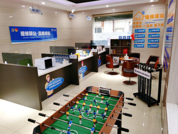 近年来,外卖、快递、网约车等新业态经济迅猛发展,新就业群体规模日益壮大。为加强对新业态新就业群体(简称“两新群体”)的关爱,青岛莱西市依托望城街道后塔社区党群服务中心阵地资源,打造了莱西市首个独立的24小时免费开放的“想莱就莱·暖蜂驿站”,为“两新”群体提供免费开水、便民药箱、免费充电、取暖纳凉等十几项暖心服务。