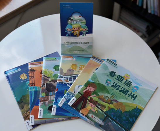 9月17日,亚运会交际汉语丛书在湖州市安吉县余村正式对外亮相。该丛书由北京语言大学、杭州师范大学联合出品,华夏出版社出版,包括《交际汉语口袋书》和《杭州亚运会赛区城市主题绘本》。首批2000余册将进入亚运场馆及亚运村摆放,免费发放赠阅给各国代表团。