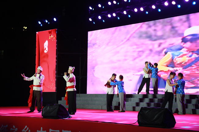 文艺演出在热烈的掌声中拉开帷幕,《古老的信天游》《脚夫调》《一对对鸳鸯水上飘》《小桃红》《走西口》……获奖歌手们相继演唱自己拿手曲目,为现场观众献上一场精彩的陕北民歌盛宴。