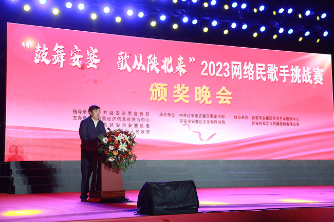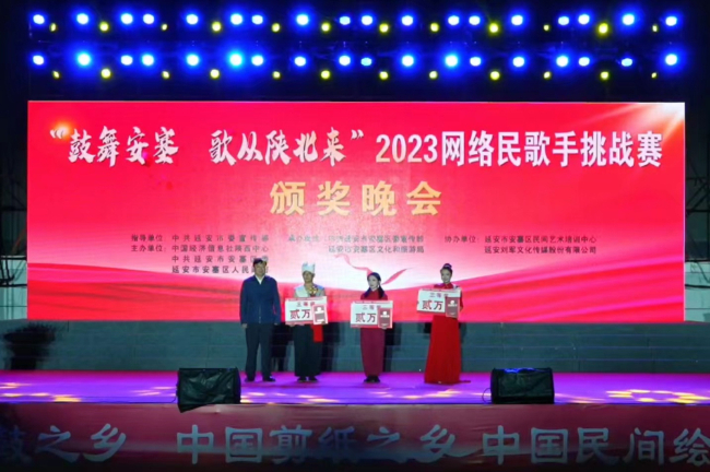 9月27日晚,由中共延安市委宣传部指导,中国经济信息社陕西中心、中共延安市安塞区委、延安市安塞区人民政府主办,中共延安市安塞区委宣传部、延安市安塞区文化和旅游局承办的“鼓舞安塞 歌从陕北来”2023网络民歌手挑战赛颁奖晚会在安塞举办。