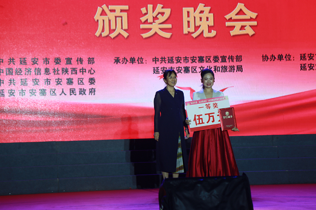 延安市委常委、市委宣传部部长,市政府党组成员杨宏兰为一等奖获得者颁奖。新华网 王智超 摄