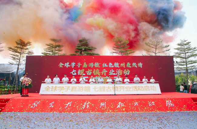 9月28日,江西赣州七鲤古镇国际旅游度假区正式开业。10多种非遗民俗表演、20多种奇妙游会、几十种美食汇聚、声影实景舞台水秀、无人机表演夜秀……七鲤古镇度假以丰富的旅游业态为游客带来度假新体验。