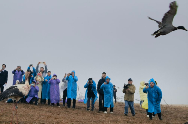 1月8日,25只候鸟在江西省鄱阳县鄱阳湖国家湿地公园集中放飞。