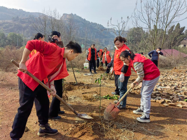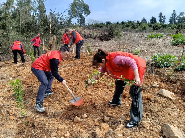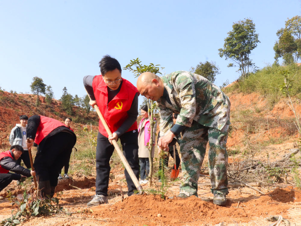 三月春光好,植树正当时。3月8日,江西省抚州市广昌县长桥乡组织党员志愿者及乡、村干部开展植树活动。 谢欣 摄