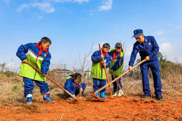 3月12日,在第46个植树节来临之际,江西省弋阳县组织党员干部广泛开展植树增绿活动,以实际行动助力“同建绿色弋阳 共享鸟语花香”。郑宏伟 摄