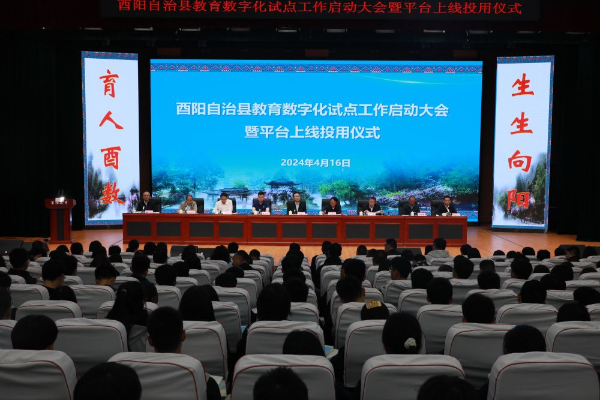 图为酉阳自治县教育数字化试点工作启动大会暨平台上线投用仪式现场。受访者供图。