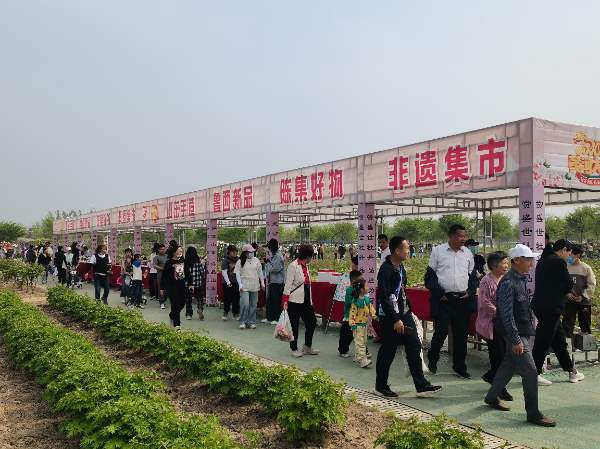 活动现场热闹非凡,汇集了菏泽鲁西新区的曹州面塑、古法钩织、毛绒玩具、陈集山药等20余种特色非遗、文创商品以及名优特产。这些丰富多彩的展示内容,是对全区黄河文化和民俗文化的一次全方位、系列化、区域化、集中化的宣传展示,有力地促进文旅融合发展,为游客带来了沉浸式文化体验。
