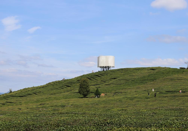 在史子园茶园最高处,屹立着作品《大地之灯》,吸引游客前来打卡。新华每日电讯记者张典标摄