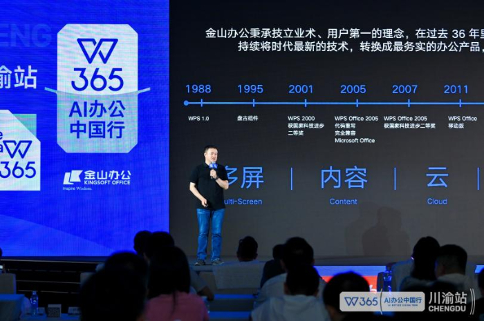 6月20日,金山办公WPS 365 AI办公中国行川渝站在成都举行。金山办公在活动现场介绍了WPS 365打造一站式AI办公的全新技术成果,以及助力川渝地区“数字双圈”建设的实践案例。