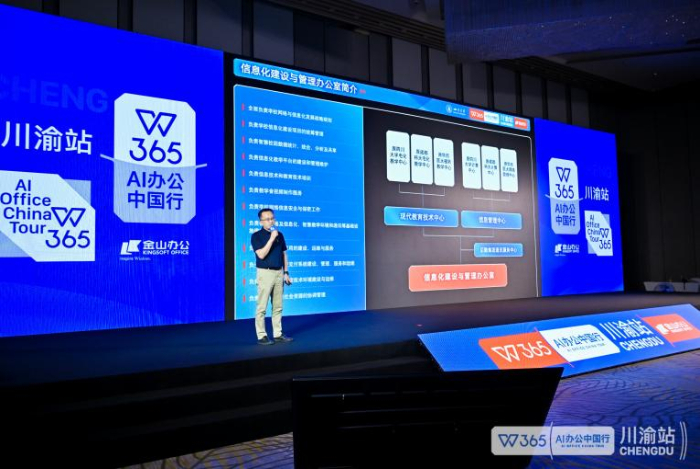 在WPS 365 AI办公中国行川渝站上,四川大学分享了在金山办公长期服务助力下的信息化建设成果。