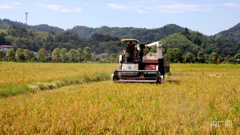 农机手驾着收割机忙收割(央广网发 柳攀 摄)