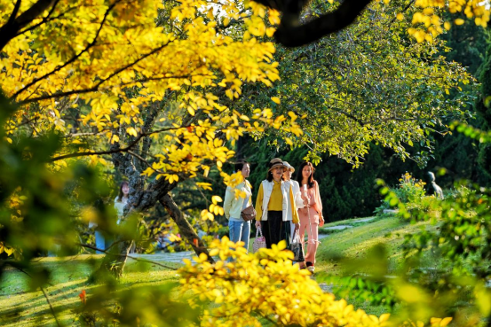 治愈系“捡秋”的前提是公园、绿地等抬“脚”可及。漫步八大关,一个个口袋公园利用现有空地,梳理园路,开辟林下漫游路径,形成宁静、闲适的疏林草坪休憩空间。只需一个转身或不经意间的移步,就能邂逅一片绿意盎然、典雅精致的“小天地”。
