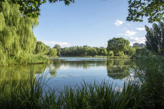 沿着坝河北岸,一路进入将府公园。