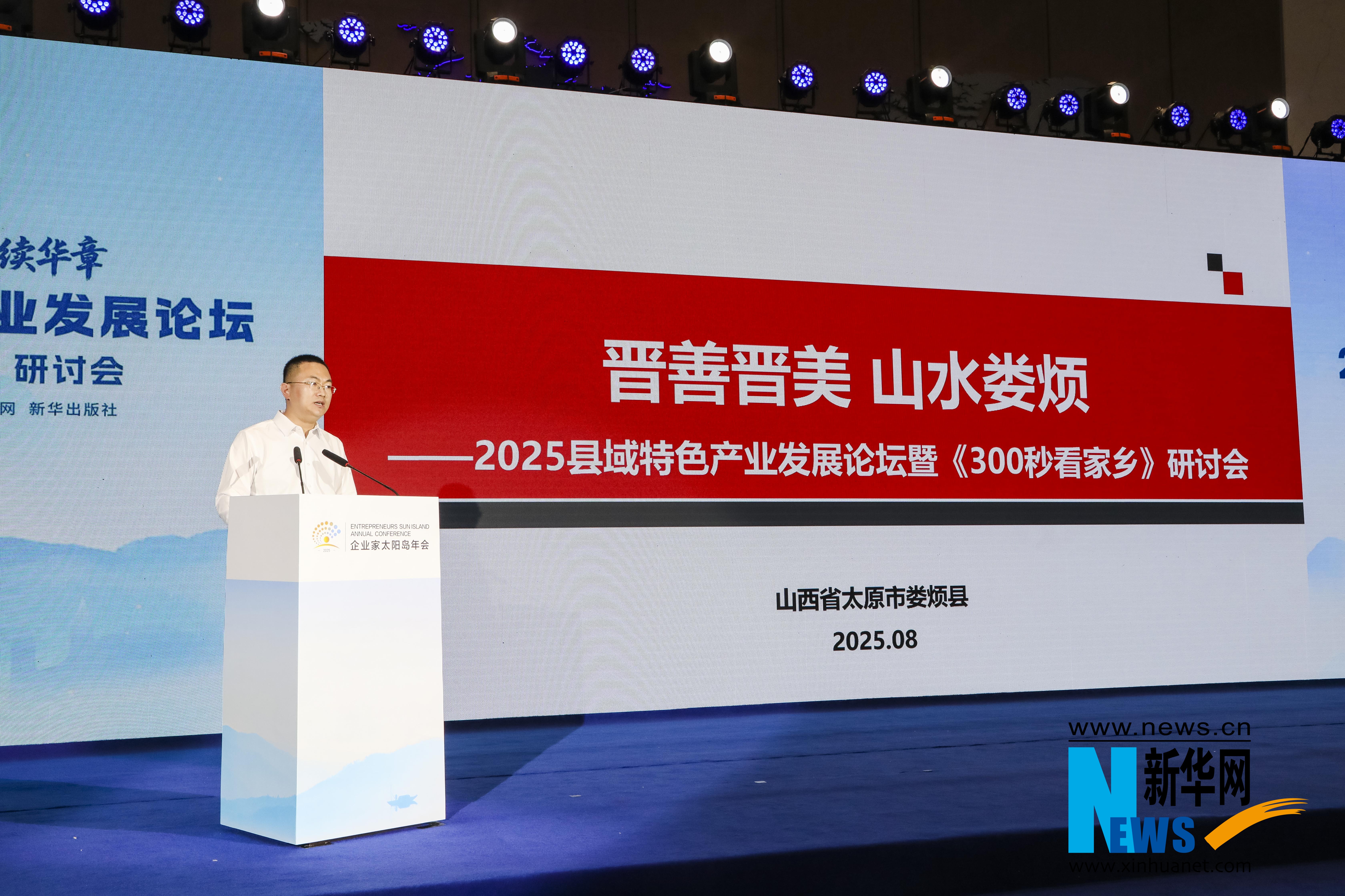 新华网哈尔滨8月2日电(杨登媛)8月2日至4日,2025企业家太阳岛年会在哈尔滨举行。在2日召开的2025县域特色产业发展论坛暨《300秒看家乡》研讨会上,山西省太原市娄烦县委常委、宣传部部长、统战部部长武鹏在致辞中表示,娄烦县将围绕“建设绿色发展新高地、乡村振兴活力县、休闲康养度假区”的目标,积极探索文旅产业赋能乡村振兴的新路径。