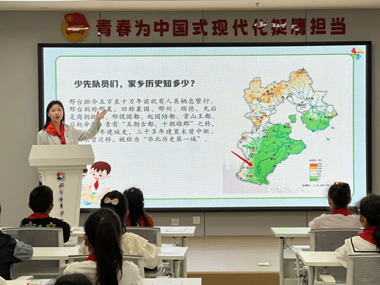 “同学们,我们的家乡邢台拥有3500多年建城史,千年历史长河中,有哪些璀璨人物?发生过哪些历史故事?今天,让我们共赴一场穿越时空的邀约!”在河北省邢台市青少年宫,市金华实验小学大队辅导员李彤彤老师正带领少先队员们开展《何以为邢》主题队课。课堂气氛热烈,互动频频,孩子们沉浸在精彩的家乡故事中,对邢台的历史文化底蕴有了更深地了解。