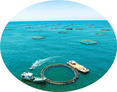 从福建省福州市连江县定海湾码头出发,乘船航行约1公里,“定海湾1号”深远海养殖平台屹立海中。“这一平台长约60米、宽约32米、水深约17米,面积超过4个篮球场,可容纳大黄鱼20多万尾,还能实现智能化管理。”福建鑫茂渔业开发有限公司董事长卢统锋说,“深远海养鱼,水质更好、水流更急,藻类、浮游生物种类丰富,大黄鱼口感接近野生,零售价远超传统养殖的大黄鱼,单位产值是传统养殖方式的10倍。”