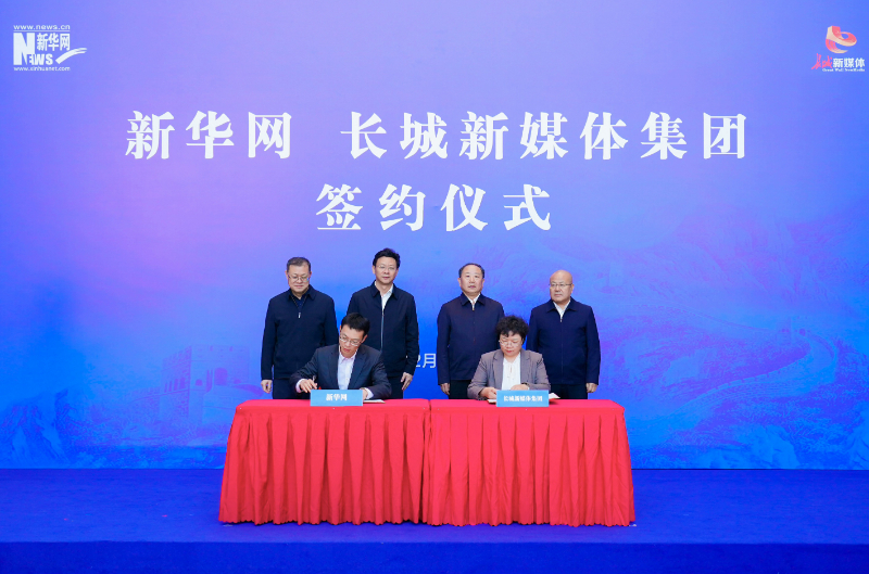 在双方领导见证下,新华网党委常委、常务副总编辑李志晖与长城新媒体集团领导班子成员、河北经济日报社总编辑王丽平共同签署合作协议。新华网党委书记、董事长储学军,新华网党委常委、总编辑车玉明,长城新媒体集团党委书记、董事长郭新耀,长城新媒体集团党委副书记、总编辑王悦路等出席签约仪式。
