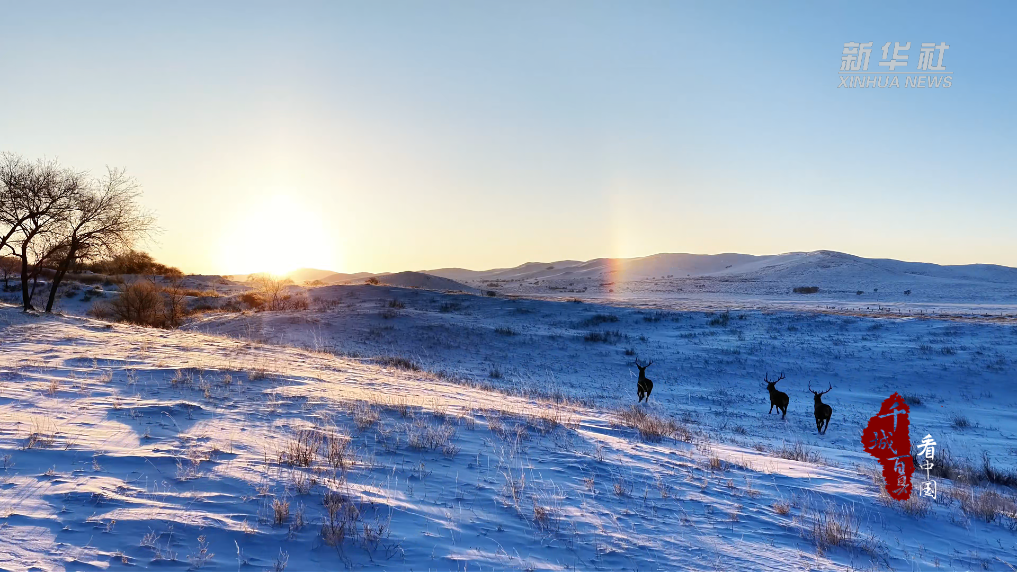 群驼昂首,勒勒车徐行,夕阳温柔裹着驼影,霞色浸染间牧人悠然踏向归途。待到晨光熹微,草原精灵马鹿在雪野间奔跃嬉戏,共同定格锡林浩特冬日独有的壮阔与温柔。