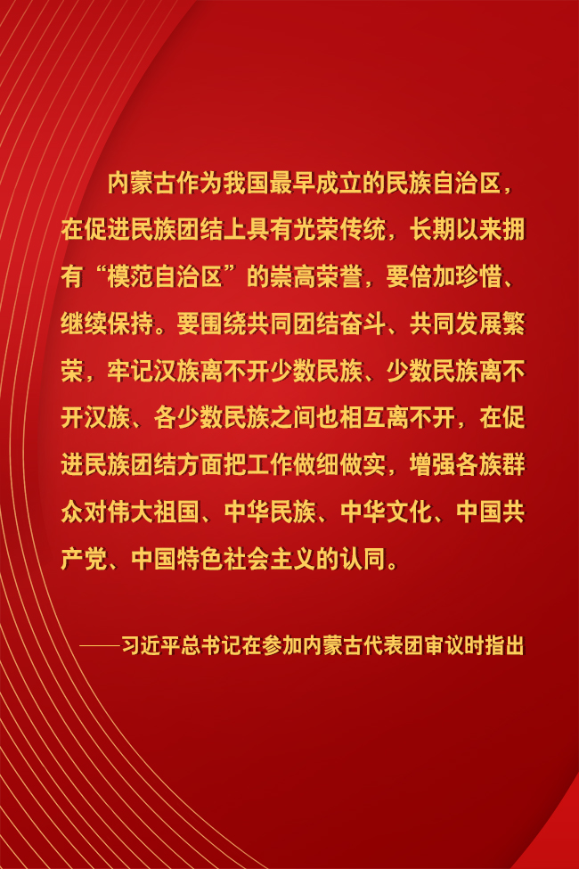 最伟大的力量是同心合力。习近平总书记5日下午在参加内蒙古代表团审议时强调,要倍加珍惜、继续坚持民族团结光荣传统和“模范自治区”崇高荣誉,巩固发展民族团结大局。