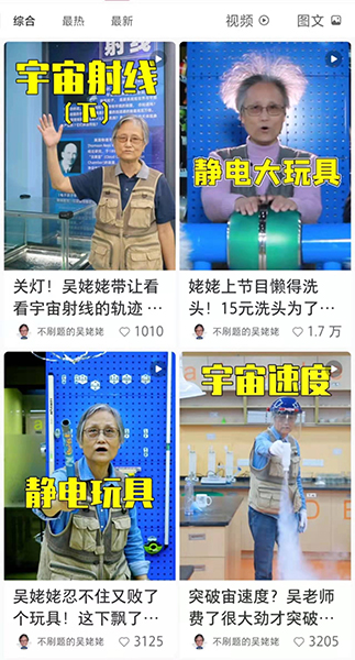 视频中的老人叫吴於人,网友称她“吴姥姥”,72岁,坐拥百万粉丝。“吴姥姥”退休前是同济大学物理学教授,退休后成了爱“玩”物理的老小孩,在她手里,鸡蛋、花生、硬币等都能成为实验用品。