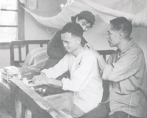 图为1969年,李国桥自身感染疟疾,让同事针刺大椎穴,试验针灸治疟效果。资料图