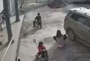 除了父母,还有手足相伴。镜头记录下这样一幕:在等红绿灯的时候,姐弟俩玩起了拍手歌,打发下无聊的等待时光。周围环境算不上美,孩子也捂得严严实实,但两人在一起的画面却十分温馨。