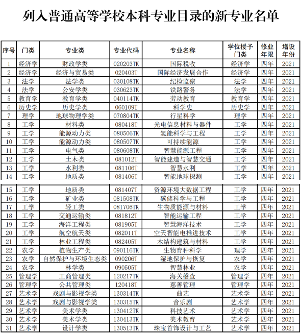 就在不久前,教育部推出31个本科新专业,包含碳储科学与工程、空天智能电推进技术、生物育种科学、资源环境大数据工程、湿地保护与恢复、智慧林业、劳动教育、科学史等。这些新专业更融合,更智能,折射了复合型人才的培养导向,给了考生们更多选择。