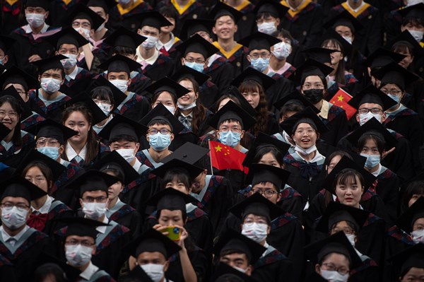 毕业典礼后把博士帽抛向天空。新华社记者 姜帆 摄