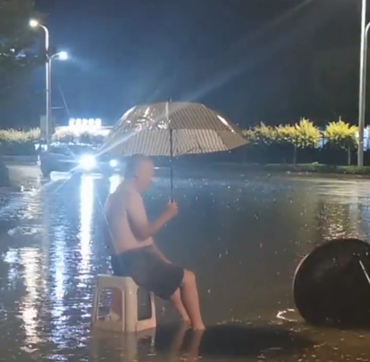 在河北沧州,大雨过后,路上积水很深。张先岐老人为了尽快排水,打开排水井盖,因为担心来往车辆和行人掉进去,他一刻也不敢离开,撑伞守在排水口近两小时,留下了感人的身影。