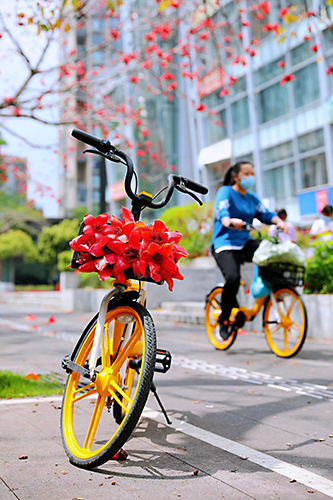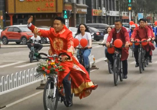 浪漫的一幕让路人赞叹不已,“自行车迎亲,低碳环保又有新意”“太浪漫了!为这样的迎亲方式点赞!”“祝你们永远幸福!”……